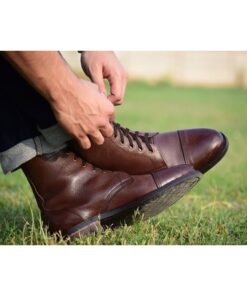 Handmade Brown Leather Ankle Derby Boots for Men, Jungle Hiking Boots