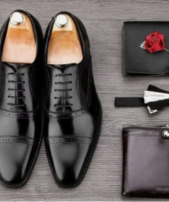 Men Black Leather Oxford Lace up Brogue Dress Shoes, Formal Leather Office Shoes