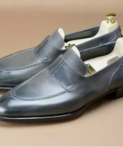 Men Handmade Gray Leather Moccasin Shoes, Gray Office Shoes, Gray Loafer Shoes