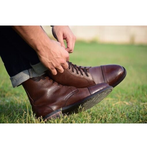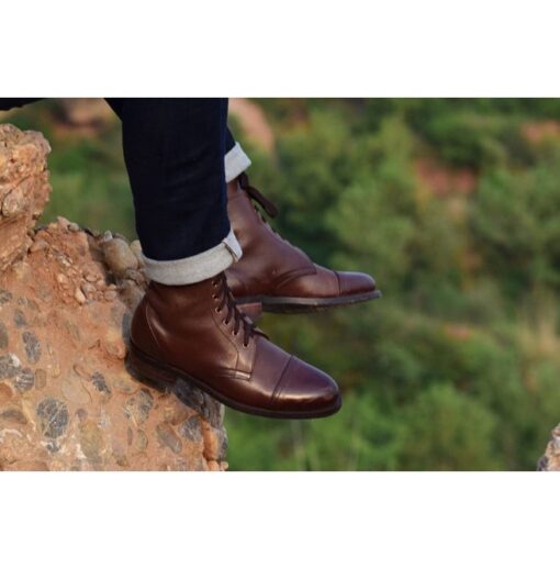 Handmade Brown Leather Cap Toe Ankle Boots for Mens, Men Lace up Ankle Boot