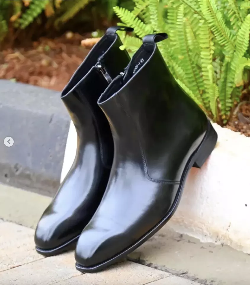 Handmade men black side zipper boots for men’s, formal zipper boot for office
