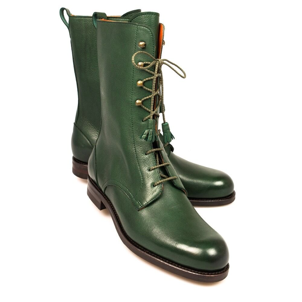 Handmade Men Green Leather Long Boots, Street style Biker Fashion Boots