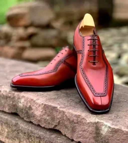 Handmade men reddish brown brogue shoes, formal dress oxford shoes for mens