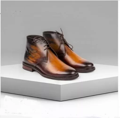 Handmade Men Shaded Tan Leather Ankle Boots, Formal Work Boots, Office Boots