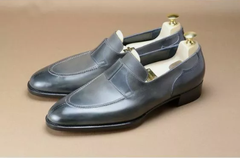 Men Handmade Gray Leather Moccasin Shoes, Gray Office Shoes, Gray Loafer Shoes