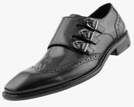 New Men’s Black Wing Tip Brogue Triple Monk Strap Formal Dress Handmade Shoes, Leather Dress Shoes, Business Shoes
